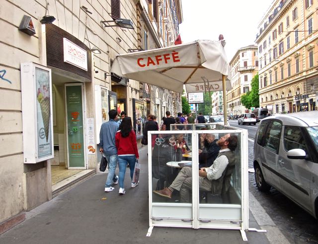 Reluctantly we got up and and began our walk to the nearest Metro station. Cute little  enclosed patios set up here and there.