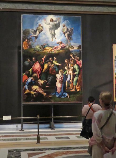 Some museums have a dozen or more rooms. So we knew to head directly to Room VIII in the Pinacoteca Museum ( housing things from the middle ages to the 1800’s in chronological order ) in order to see Raphael’s masterpiece, ‘ The Transfiguration ‘.  This was his last work before he died and it is said to be one of the most iconic paintings in the Vatican Museums.  If you want more information about this or other photos below please check on your own as time does not allow me to be your tour guide.