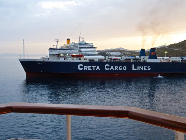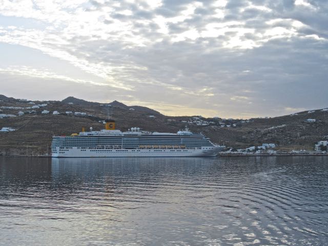The first photo shows the bit of sunrise, I did go back to sleep for another hour. Note the cruise ship behind the ferry. As we pulled out of Mykonos there was another lovely white cruise ship in port. Looks like it is going to be a busy day in Mykonos.