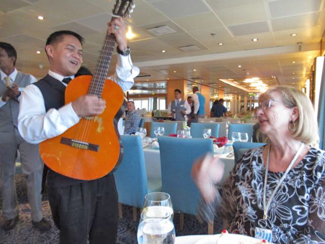We stopped in a lounge for predinner cocktails ( I had a two Long Island Ice Teas ). The pianist and the violinist have been working together for a longtime and their aperitif melodies were wonderful to relax with.