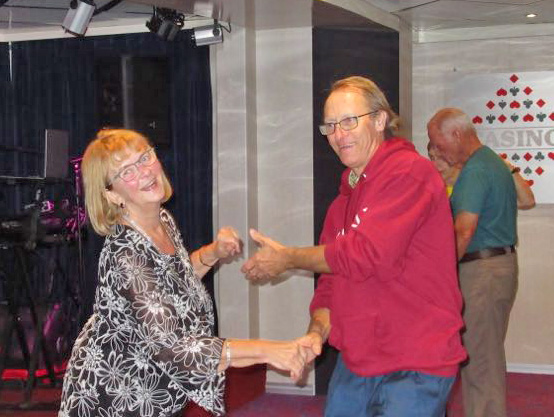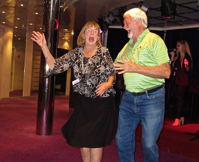 We then went to another lounge where we listened to and of course dance to ‘Duo Jaleo’. Turns out they are from Cuba and know some of the same musical people the Colin does. We danced, I ended up dancing with a fellow who happened to be a ballroom dancing instructor ( green shirt ) from Australia ( that is the photo of me with my mouth open – I survived the turns ).