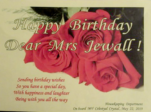 Back at our room I had another surprise awaiting me. Balloons all over the place plus a very special birthday card/not from the housekeeping staff. I was trying to be Carmen from the opera!!