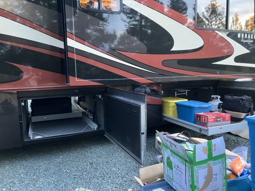 We had three very large 5th wheels pull in very late afternoon – like after 5PM. No idea where they are from or where they came from today. But they seem to be setting up for more than a night or two. Hope to get more into re the roads etc.
