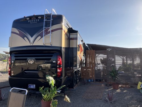 We are moving to an even larger area which is actually 4 individual lots. There are now two homes in that area, one is newly built and is actually two separate apartments, the other is the owners huge wonderful home. Plus there will be our RV, another large 5th wheel ( they will be coming and going and not there on a daily basis ) and the old 5th wheel which has been moved to the back of the site along the wall and rented out for a period of time. So three cement ( I really wanted to say brick and stick ) homes and three RV’s which will pretty much be permanent. So should I call it a commune? Certainly better than #15. Any and all suggestions will  be considered.