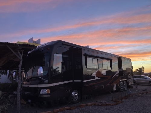 So from the fall of  2009 to spring of 2023 we lived at the Tres Amigos RV park. Then the winters of 2023/2024 and 2024/2025 we lived in what I called the “compound” with Genie and Joe. So now we are moving four lots over southish – towards Chivos. The compound was comprised of 3 individual lots which is why it was so large for the two RV’s.