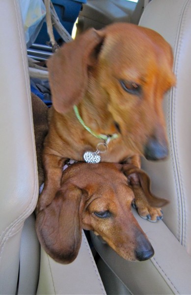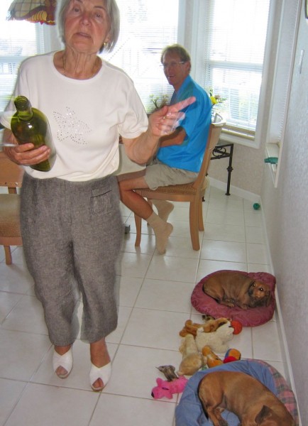 About 4:15PM it is time to head North across the border to visit Katie and Louie whom we call Gramma Katie & Uncle Louie….they adopted the girls many years ago, actually it was our first 2 doxies…these two are #3 & #4! Gramma Katie loves any animal to death. In fact she has been feeding raccoons in her back yard for over 40 years and we got to see the mamma and her babes. It is always a joy to visit with them. Lots of fun.
