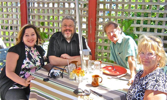 - here full time in the summer and come for the holidays, etc. Being Canadians they are not allowed to be here as much as they would prefer. Jenafor loves to garden and we had fresh veggies and lettuce from her garden. Leah grilled us some fresh spring salmon. A superb meal with with superb friends. The evening ended all too soon but we all had early morning commitments.