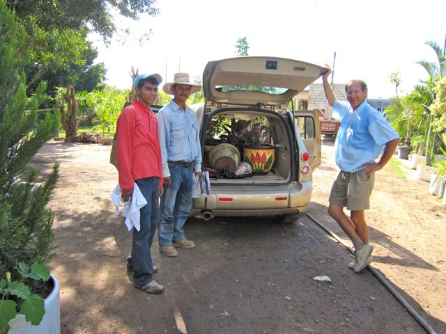 Big bonus is that we found a vivero close by, between here & Villa Union. Right now they are empty of anything but huge palms. They are expecting a shipment of plants within 2 weeks. I asked them if they could also please bring in some macetas. We did buy a few plants, one of which I negotiated the purchase of the maceta it was planted in.