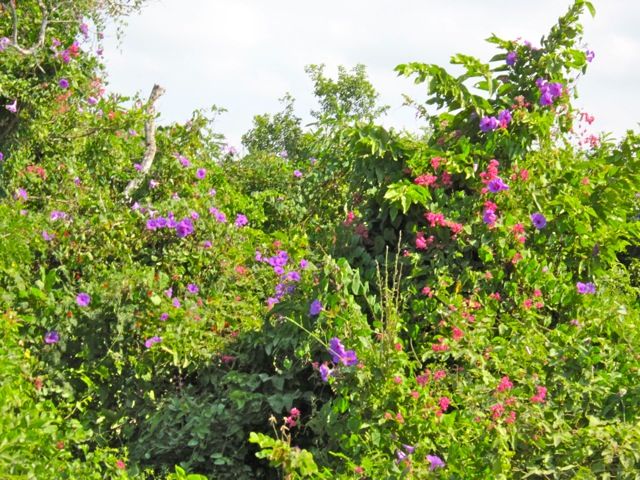 By the way the road has been totally graded and is in much better condition than when we arrived. We drove it twice this past week in the car. The road is now wider as much of the vegetation has been cut back. The grading of the road covered all the lovely blooms along the road in dust.