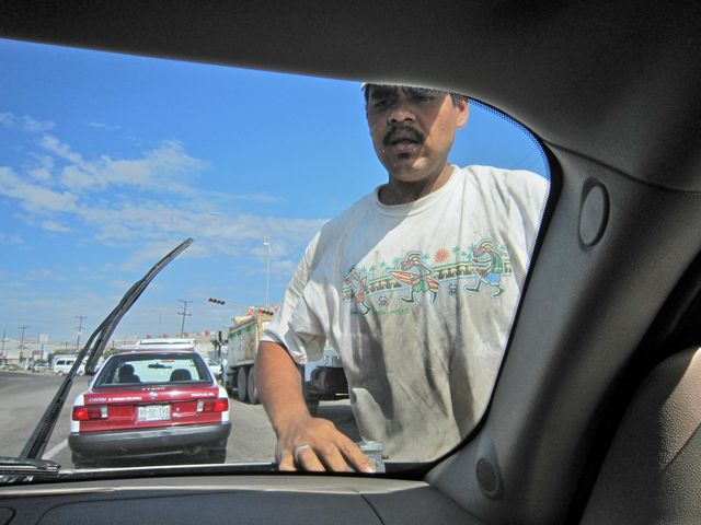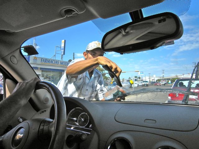 No matter that your window was cleaned at the last intersection, they 'try' to do it at each stop. Anything for a few pesos.