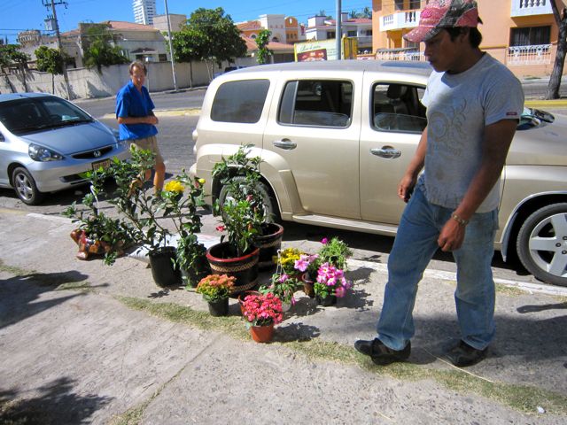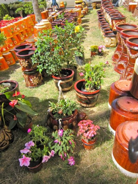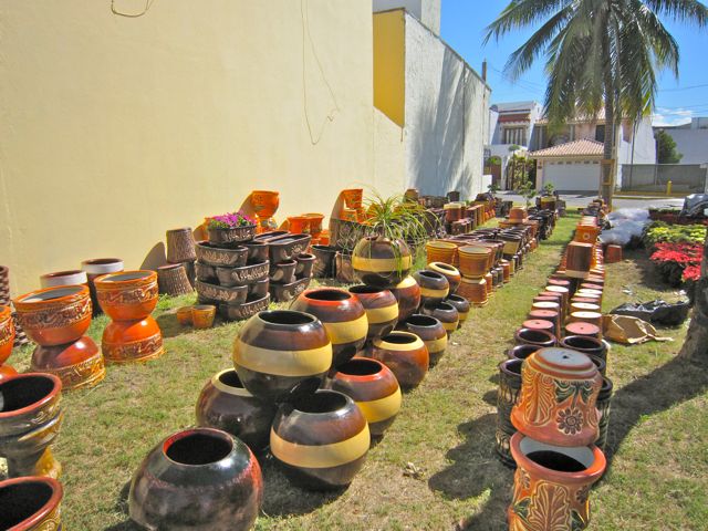 We found a wonderful vivero but the prices were rather high so we kept going and somehow ended up at the marina.  Then we headed south along the Golden Zone which it rather empty of tourists right now.  We decided to check out some ceramic plant pots but we were on the wrong side of the street.  In the process of turning around we came across a wonderful place selling macetas & plants.  This is an empty lot that a young entrepreneur  has taken over for as long as he can.  It is best reached by turning right just after Burger King ( Applebee’s is on the left hand side ) and driving past Starbucks. Park and you will astounded at the selection.  I felt like it was Christmas morning.  We certainly gathered up as much as we could.