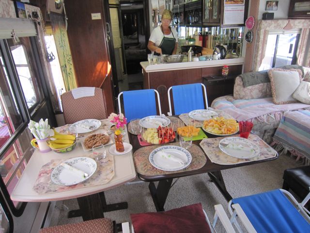 I started the breakfast prep about 9AM, we ate inside about noonish! The weather here is so chilly that to set up outside was too big of a risk! Yummy hotcakes as they say here in Mexico. We have always called them pancakes.