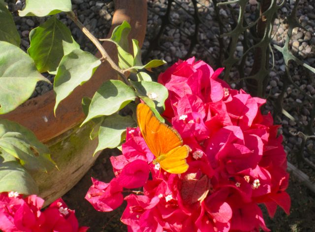 I loved the picture of the butterfly in your garden! I’ve always wanted a bouganvilla in my yard, at my old house in California I tried growing one several times. Everytime winter came it would freeze. In Nayarit they grow like weeds anywhere and everywhere, so I am looking forward to finally having one!