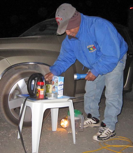 So last night we set up a hot coffee bar for him, plugged into power at our site so he could have a hot coffee all night. Next year I will bring him down some of those hot packs you can put into your socks and gloves to keep him a tad warmer. He is only one of many suffering through this cold snap. Our friend ( the one building the house) has a warmer place to sleep tonight. Hopefully a few others will also!!