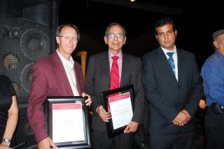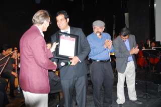 The Maestro Heriberto Soberanes was also called to the stage to receive a plaque. Needless to say both he and Colin were surprised. A few times Colin had played guitar on the radio while Heriberto was promoting the festival.