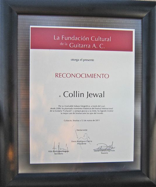 He was presented with a plaque as a thank you for all his years of taking photos for the Festival while attending it. The photos he takes are used for website & promotional literature to help create a greater world awareness of this special cultural event that takes place annually in Culiacan.