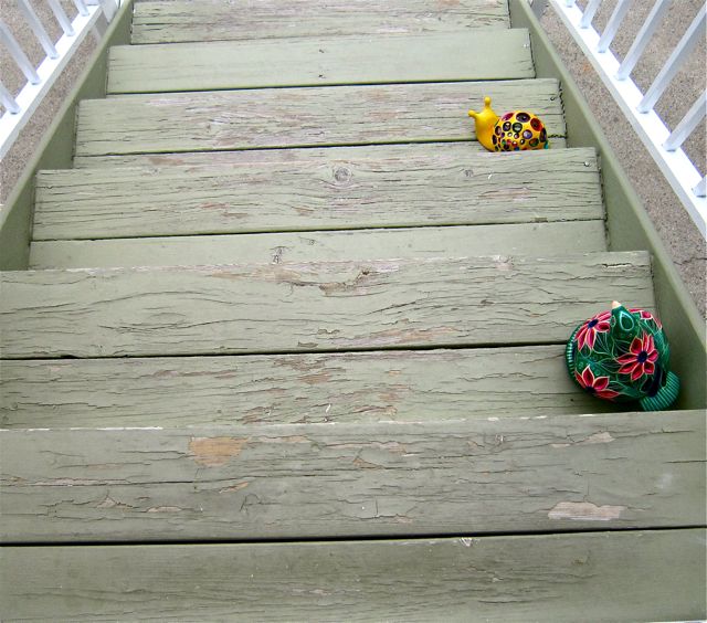 The sun, the rain & the snow had killed the steps. We were tired of the pieces being dragged through the house.