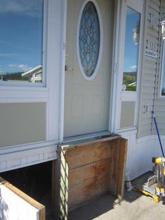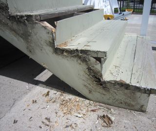 'Vi' delivered the very very bad news. The stairs and their foundation were rotting. They had been constructed on untreated wood!!!!!!!