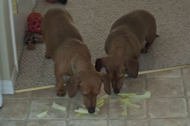 My vet is also vet to my son’s pets. He got the great idea to supplement the chubby dog’s food with green beans. They love them and it stays with them for a while.