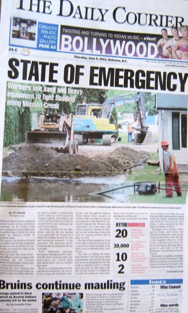 Fires are burning Arizona, the humidity is doing in NYC, and other parts of the US are flooding & in Toronto, residents are recovering from a horrid storm.  Here is Kelowna the newspaper headline on Thursday read..