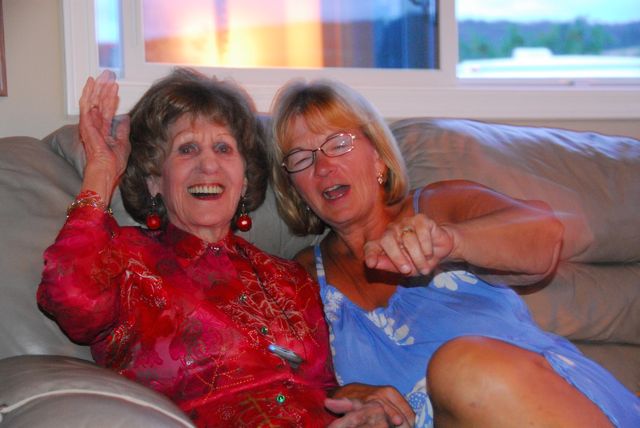 Mommio and I have so much fun together, we ply each other with wine and then sing and dance. Our most fun time was when we both won simultaneously on dollar machines in the local casino. We came home and told Colin we had lost all the money he gave us and pretended to be really sad, once he believed us we started throwing $50.00 bills at him. I think that between us we won about $1500.00 after retuning his seed money! Of course we split the winnings and then we spent my share on new clothes for her.