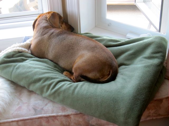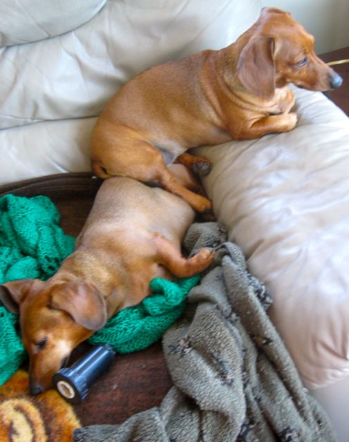 Susie…..well at least one doxie is reaction free. Looking forward to our wine sunsets on the Isla!