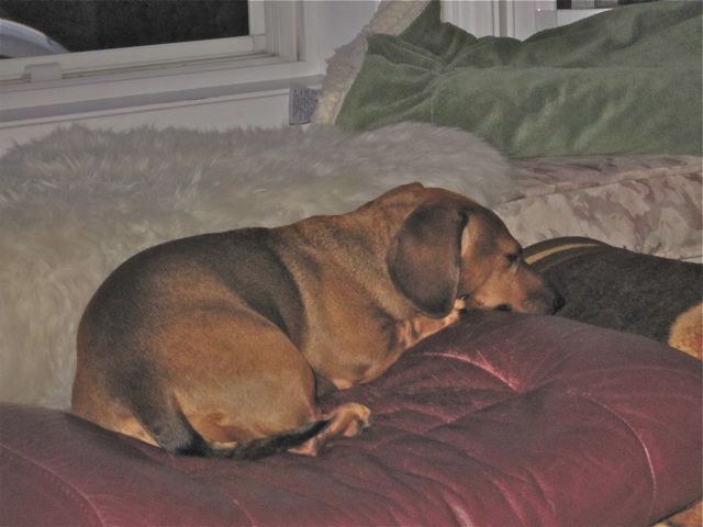 The other strange thing was that Hilde, the doxie puppy, also got bit by a bee or wasp yesterday but she is 100%. Thank goodness.