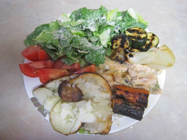 Yesterday, Saturday of the long  weekend, mi amore stayed home, even told a client who called at 5:00PM that he would get back to him on Tuesday:))  We had a great day together, relaxing but got some stuff accomplished.  Great salmon, potato & veggie BBQ accompanied by yummy Caesar salad.