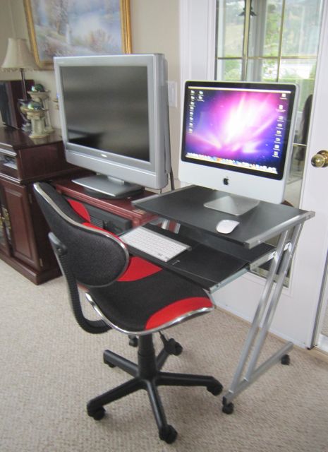 Nice computer table for 18 dollars. Too bad about your Mac Book. Mine was have issues and Idid some fiddling and cleanup and now seems to be working just fine, will keep my fingers crossed.