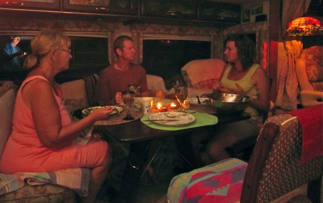 Rather then waste a second we decided to eat dinner at home, some of the fresh dorado we had picked up in the morning. Ruth put together a great salad with ingredients we found in my fridge. BBQ fish, spuds and a bottle of Chardonnay left us pleasantly satisfied. I like this photo because Colin is it even thought he took the shot.