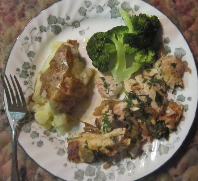 As this was the end to a very hectic day, we simply added a baked potato and broccoli to the meal.