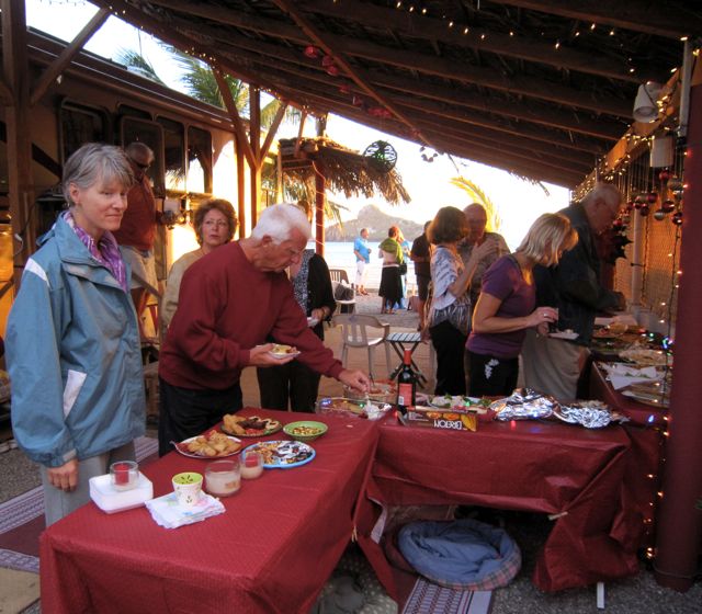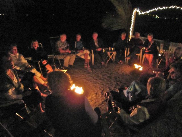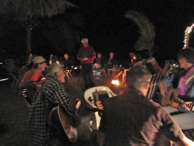 A few nights ago, Sunday the 18th, Colin & I hosted a party for all the RVers plus other friends on the Isla. The evening was a huge success, almost 6 hours of fun, food and music. We called it our Palapa Roof Raising party, I think we shall make it an annual event.