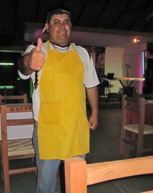 Meet Hugo! He lives in Mazatlan with a wife and daughter and works on the Isla. He lived in Canada ( Victoria ) for many years and had a Quebecois girlfriend whom I think he still loves. Hugo has the perfect French accent and speaks better French than most people I know, me included. In fact he is fluent in 8 languages, and was able to tell us " I love you" in Russian, Italian, German, Dutch, Arabic, French, English, and of course Spanish. He is currently studying Japanese in the hopes of working as an interpreter at a yet to be built Nissan plant in Aguacaliente. He spent the evening going from table to table making sure that everyone was happy. We had more food than we could eat and of course non stop drinks. Bottles of good wine were also available for 100 pesos. Our coconut shrimp were to die for but I just couldn't eat it all.