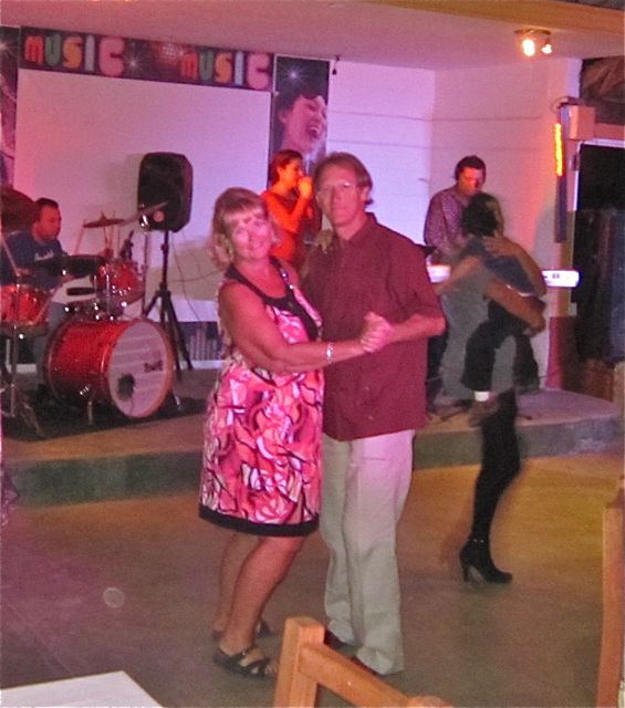 ...I reserved most of my dances for my sweetie. Notice my practical dancing shoes. We pulled ourselves away about 10:45PM...although I could have danced all night!!! We checked out the Maria Coral Hotel on the way home and found it pitch dark. That party must have ended very very early. Last I heard the party we were at was still going strong at 1 AM!!