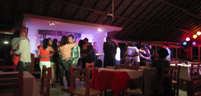 We then had a choice to make.  Stone Island now has two restaurants open in the evening and we had to make a choice  of where to have dinner.  Most of the RVers chose to go to the Maria Coral Hotel but being the contrary couple that we are, we went to Tio Juan’s Restaurant at the other end of the beach.  The Maria Coral was offering a choice of 2 entrees with a glass of vino for 240 pesos while Tio Juan was offering a meal plus unlimited pina coladas, margaritas and cervezas for 200 pesos as well as live music.  Only 3 couples from the RV park went there and all the rest were locals.  It was a blast.