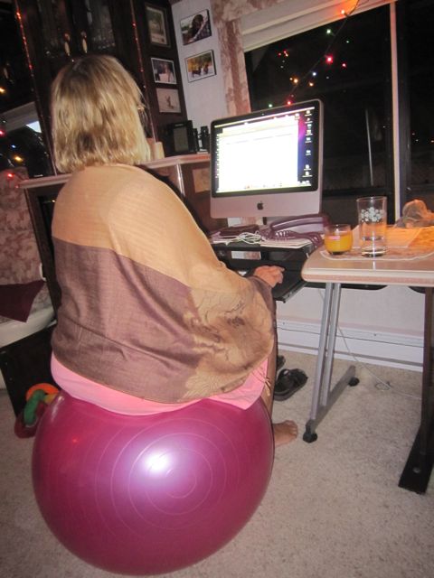 It was the one that I couldn’t sit on because I kept falling off.  Colin started using it to sit on when he practiced guitar but I never did get a shot of him playing while using it.  The other day while in town a good bit of wind came through and took the ball away.  So either it is floating its way to Hawaii or someone is enjoying it in their home:(  So now Colin has one less ball and two little weiners:)