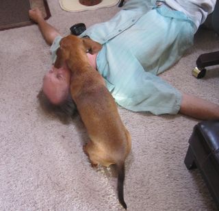 Caeli cornered a kitten under the RV around the engine and barked till we got it down and out of the yard.
