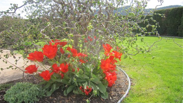 Judy our friend and winter RV neighbour passed while driving her RV back to Canada. I had written of this in April. Judy loved red so these tulips from my garden are for her. Judy was a day younger than Colin.