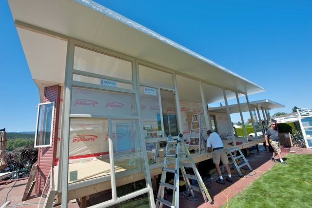A comment about your roofing for your add-on room – We too have waterfront property and have to deal with high winds coming off the ocean at our summer place near the beach. Our neighbors had an identical type roof like yours installed over their deck two years ago. They did not enclose it as far as walls though. It has upheld well and sure is nice and cool underneath in the summertime. The first year they were worried about the weight of the snow on top but it didn’t affect it at all. They ordered it from a company in Canada and are very happy with it.