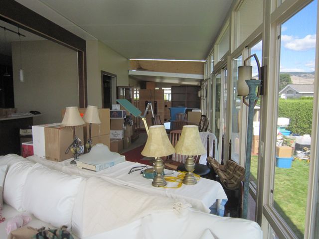 The night before the move we were totally done in. About 5 PM Colin went under the house to vacuum and discovered a huge mess, the trades had been using that area as a garbage dump. Enough said but it took 4 hours to clean up and 2 truck loads to the garbage.