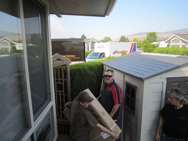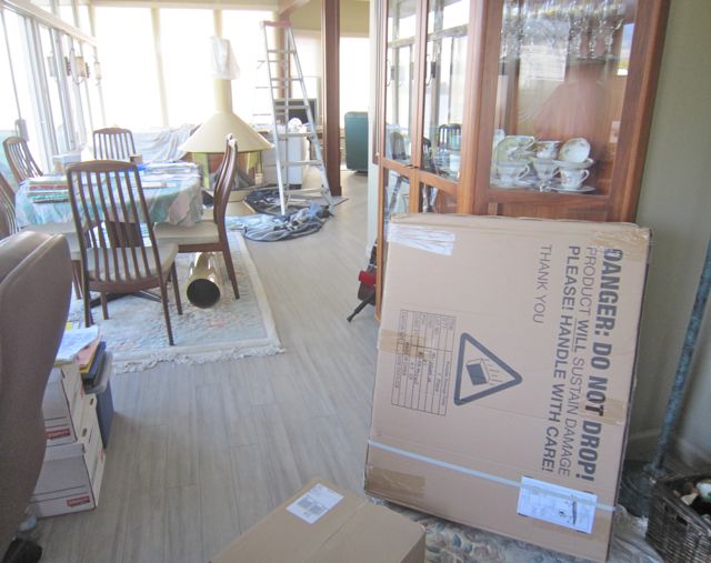 About 3:30 in the afternoon both UPS and Purolator arrive at the same time. Now we have 5 trucks blocking the street. Comical at that point! I forgot to mention that yet another trade showed up to wash the windows of the sun room. I was shocked as this was the same fellow who had washed them the first time and the owner said we would have them rewashed by a professional. I had little energy at this point so let him re smudge the outside windows, no way was he coming inside.