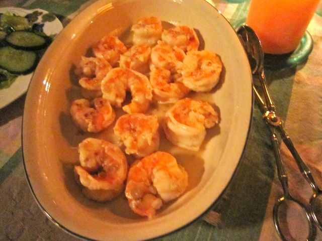 ...the last of our Mazatlan shrimp that I found in the RV freezer. I had frozen it uncleaned and once thawed, cleaned and sauteed in butter, garlic and vino blanco it tasted as good as the day we bought it fresh last March. Time to buy more soon.