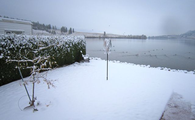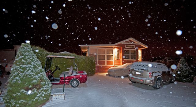 On checking the RV Colin discovered we had frozen taps with icicles, on the inside that is.  It was only -3C while the snow fell but the night before it had been -9C and I guess the coach never had a chance to warm up during the day.  He put a few heaters on and all is well.  Too late now to winterize the RV.