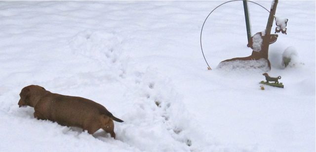 It took a rabbit in the yard to entice Chloe and Merlin to go out in the yard. They sidled under the deck along the house otherwise. Now they have a pretty path made in the snow. Can I hide in the back of your RV and go with you??!!