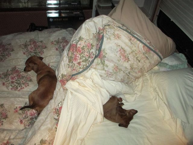 ...until Carmeh showed us how she had crawled under all the pillows and blankets to put herself to bed!