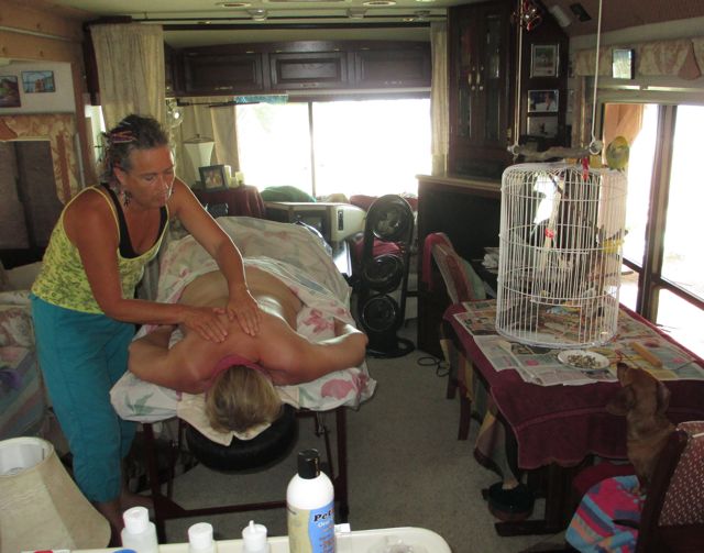 poor Carlos…lol that massage..I can almost feel it..and could sure use one…having major probs with my neck and shoulder muscles…the girls are adorable as ever….yes I heard Marj and Bob arrived there :)….yall tip one back for me…