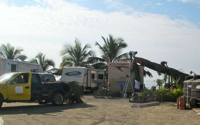 Now they are fixing our shade palapa for the front of the RV. Colin & Ismael are working hard. I did make Colin a huge omelette to keep up his energy.