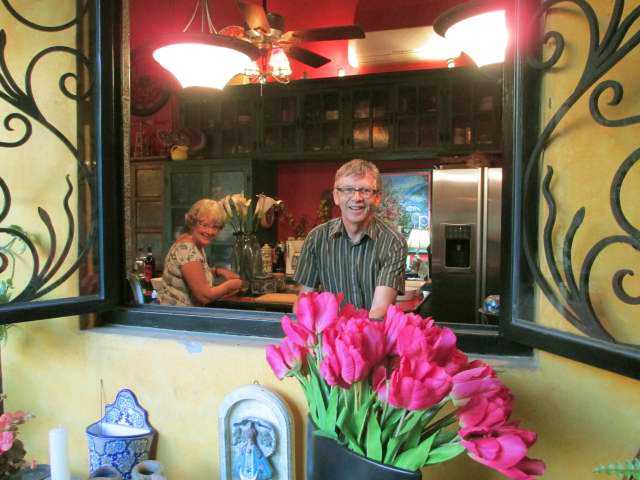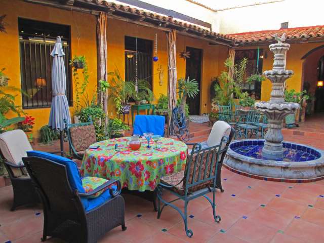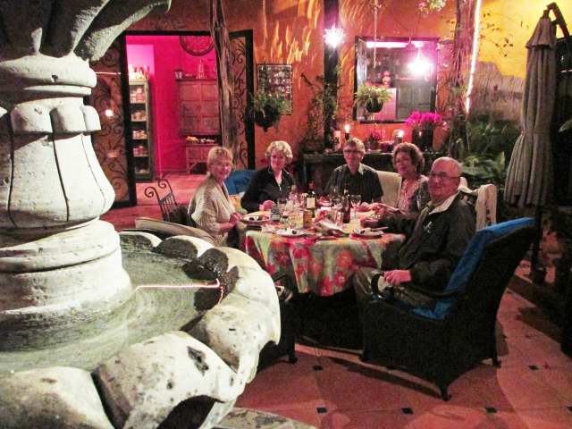 Our friends Pat & Gord have been doing a house/dog sitting thing for the past 10 days and we along with other friends were invited to dine. What made this so special is that it is in a huge ( as in 10,000 sq ft ) Mexican Hacienda right off the Plazuela Machado that has been completely redone by an interior designer.