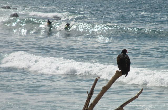 While Colin waited for me, he watched the bird watching the surfers just off Olas Altas.