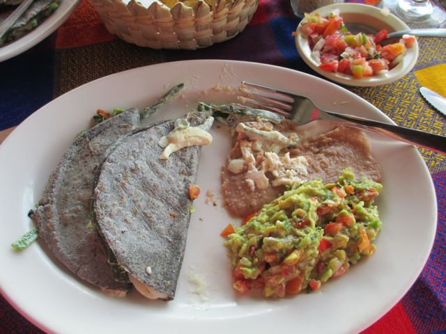 Thank goodness there are many good restaurants along the malecon. We were hungy and these blue corn quesadillas hit the spot. 60 pesos included 3 quesadillas but I had already eaten one. Perfect way to enjoy the sun, the surf and people watch.
